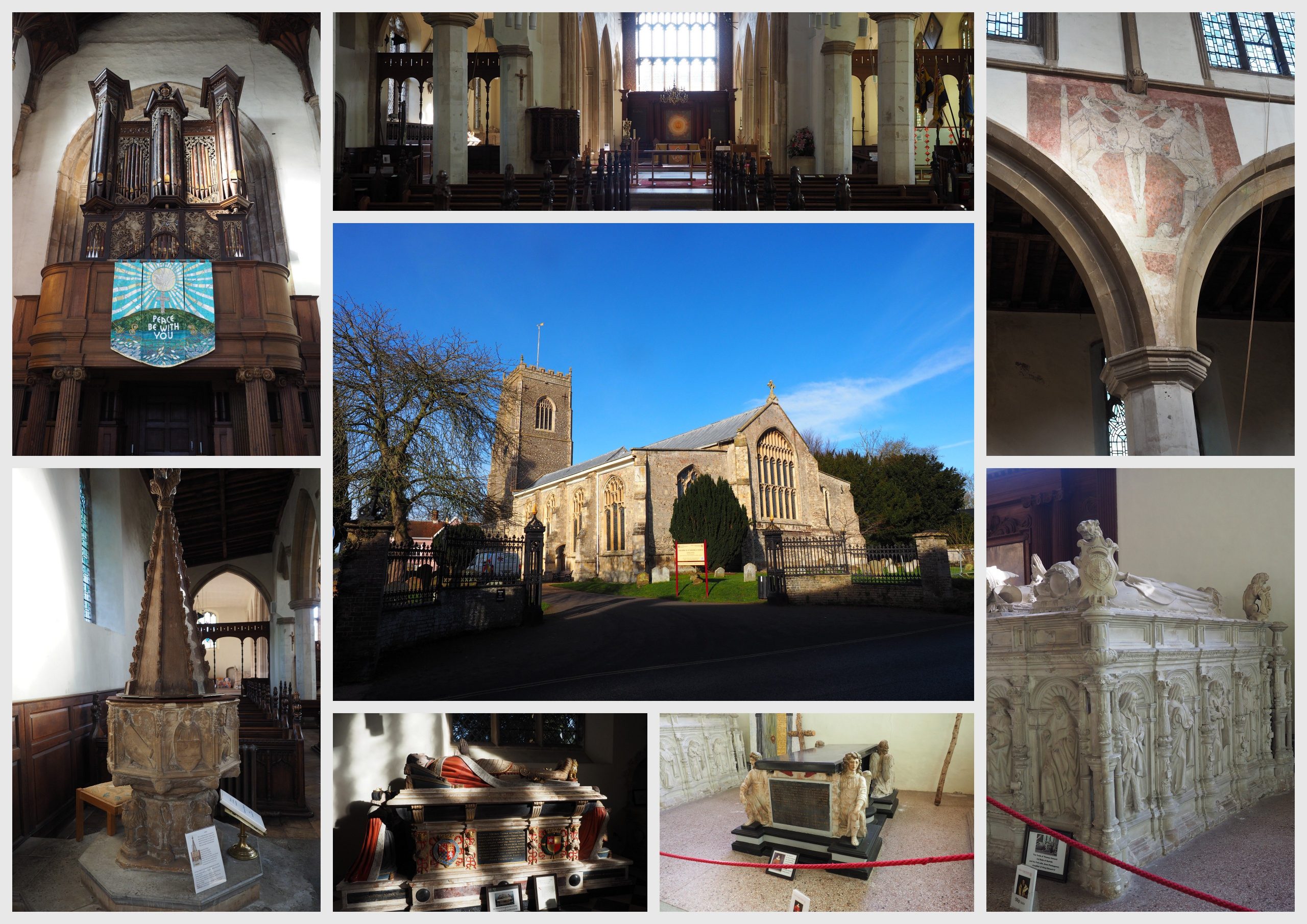 It is most known for being the host of the Norfolk Tombs – the first (going clockwise) being the coloured alabaster tomb against the north wall of the chancel. This commemorates Henry Earl of Surrey and his wife Frances de Vere, daughter of the l5th Earl of Oxford. Surrey was born in 1517 at the house of his father, the 3rd Duke of Norfolk, at Kenninghall. His classical education at the hands of scholars and his study of Virgil later gave him a poetical talent two hundred years ahead of his time. He is to this day referred to as `The Poet Earl’. In his youth he found favour with King Henry VIII and formed a deep friendship with the Duke of Richmond. In later years Surrey inherited his father’s military genius in a tactical sense and distinguished himself at Boulogne and Landrecy. His pride of ancestry and his foolhardiness in the dangerous days at the close of Henry VIII’s reign left him open to the intrigues of those who plotted for the court supremacy which would come after the King’s death. Surrey was tried for treason on fabricated charges at Guildhall on l3th January 1547 and executed on the 2lst. Look up the rest for yourself :-).
