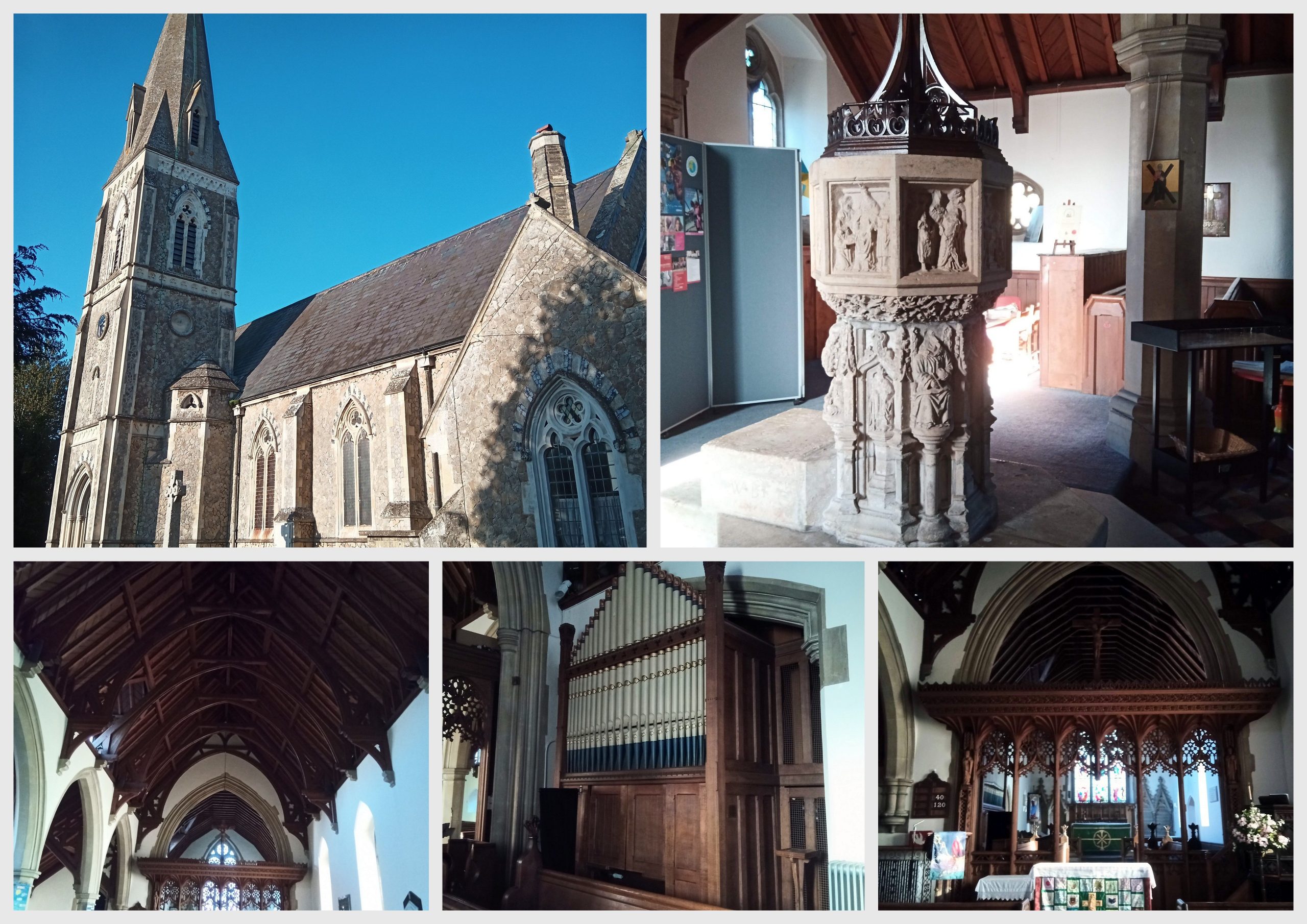 The second foray was to another church (of St. Andrew) in Melton. Tucked off the main thoroughfare. A Grade II listed building, the great feature of the interior is the late medieval font which was brought here from the old church (which this one replaced). It is one of Suffolk’s 13 seven sacrament fonts, one of only ten that have surviving imagery. It is slightly more battered than many of its companions, but it is particularly interesting for its unique 8th panel, which shows the martyrdom of St Andrew. It also has a characterful ‘last rites’ panel, with a chamber pot and a pair of slippers under the dying man’s bed, as at Badingham. This font must have been one of the last of the series; the vine work under the bowl is reminiscent of that on the font at Walsoken in Norfolk, one of the very last fonts to be made in England before the Reformation intervened. Built of Kentish Ragstone (the architect used it despite it being wholly wholly inappropriate for a Suffolk village. Be that as it may, the new St Andrew is a well-used, well-loved church, and there is much evidence of this inside its rather dimly-lit interior.