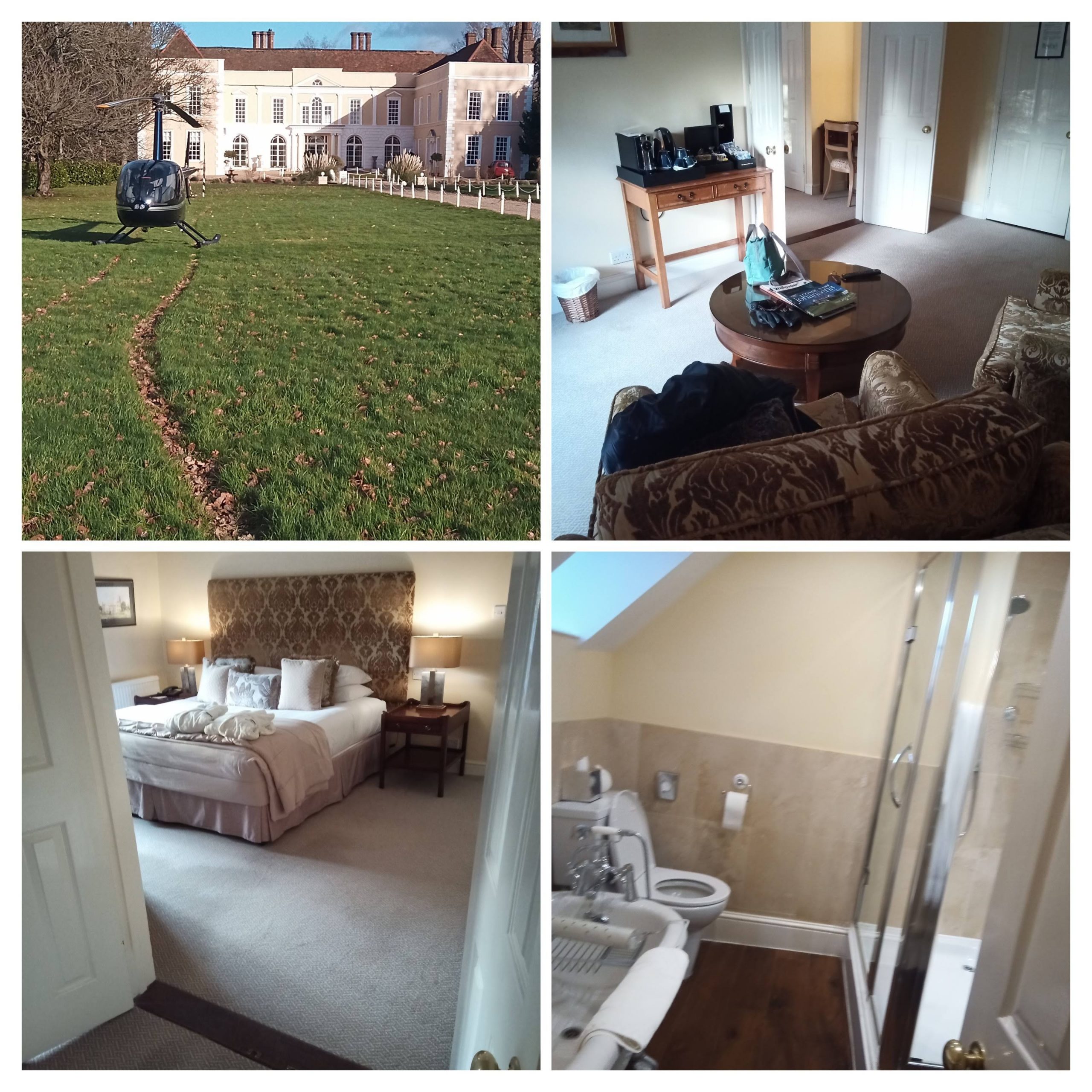 On the following Tuesday we duly set off for our overnighter to Hintlesham Hall – on arrival, we found the helicopter suitably ensconced on its pad but resisted the temptation to tell all that it was our personal mode of arrival!. Checked in to our Junior Suite, which was lovely (see pictures) and then moseyed on down to the bar for prosecco and espresso martinis. We had last visited the Hall circa twenty years ago and I can safely report that I remember virtually none of it. It appears to be as grand as before but has certainly undergone a significant refurbishment. We did however, in fairness, both remember the Library Room, complete with a range of ‘after dinner’ games still encased in the ornate bookcases of the old Tudor building.