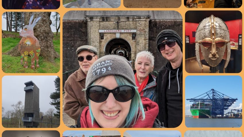 • On Sunday, another local (just the other side of Woodbridge/Melton) attraction that we have been to before, although at least on this occasion we have managed to visit more than once. According to the National Trust, Sutton Hoo is a hauntingly beautiful 255 acre estate, with far-reaching views over the River Deben, is home to one of the greatest archaeological discoveries of all time. It tells you to walk around the Royal Burial Ground and enjoy vistas from the 17-metre viewing tower to discover the history of the ship burial of an Anglo-Saxon king and his treasured possessions, find out about the archaeological work that took place here in Tranmer House, the former home of Edith Pretty, and visit the High Hall exhibition to see replica and original objects. So we did! Well, apart from the viewing tower, as we had done that in the ‘pandemic era’ and didn’t feel the need to repeat it. Coffee and lunch before the walking (coffee much improved as I recall) and we think S&G enjoyed the visit, which apparently has been a long time coming.