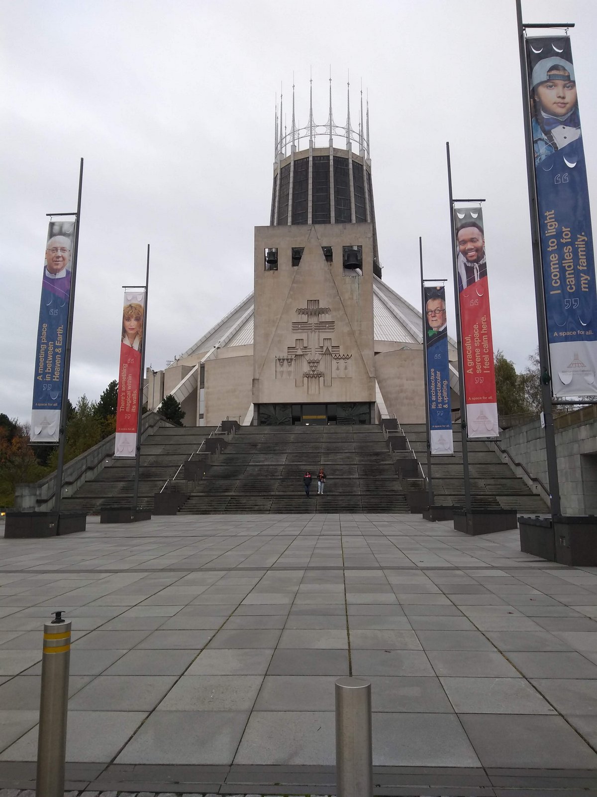 Day three began with an excursion around the city centre, and more specifically the area that housed the original Cavern Club. Obviously now a tourist magnet , it was still worth a visit and the ‘replacement Cavern built opposite was a pretty good facsimile. Had to be done I’m afraid. We then did the churches (Mrs. No Name always has to, it’s a ritual), including the Cathedral, where we thoroughly enjoyed the Tower Experience with lovely views, and the Catholic Metropolitan Cathedral (Paddy’s Wigwam); and, most movingly of all, the Church of St. Luke (the bombed out church), badly damaged by bombs during the Liverpool Blitz in 1941 and which has been left a roofless shell ever since, giving rise to its nickname. It now stands as a memorial to those who died in the war. The church and its surrounding walls, gates, and railings are recorded in the National Heritage List for England as designated Grade II* listed buildings.