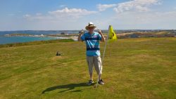 Also walked to the Pentire Headland on a couple of occasions, finding quite a dramatic landscape half a mile from the hotel entrance. Managed to work in a pint and sandwich at the very busy Lewinnick Lodge. We also thrashed our way around a pitch and put, and despite being warned not to argue on the course, Mrs. No Name was ‘not counting that’ by her second shot on the first hole :-). I would at this point display a picture of said culprit but you know what Mrs. No Name feels about her anonymity so you’ll have to make do with one of me instead. All finished by an excellent coffee and pasty from the very friendly lady at the Kraken kiosk.