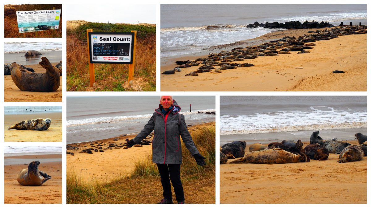The first day promised little or no rain so, having read about the possibility of a few seal sightings, we decided to traverse across to Horsey Gap to see if we could get lucky. Car park charge was a minimum of two hours, which I thought was far too long for a short stopover. How wrong I was. Walking through “The Gap” onto the beach we were met with a group of around forty grey seals grazing on the sands. Apparently, Horsey is home to one of the largest colonies of Grey Seals in the UK. Numbers have been steadily increasing with over two thousand seal pups born along this beautiful stretch of coastline in recent years. Moving along the beach with a few other visitors (all holding to the rules with regard to proximity and interference), we came across a genuinely surprising beach vista, with literally hundreds of seals lining the coastline almost as far as Winterton – certainly as far as we could see by line of sight.