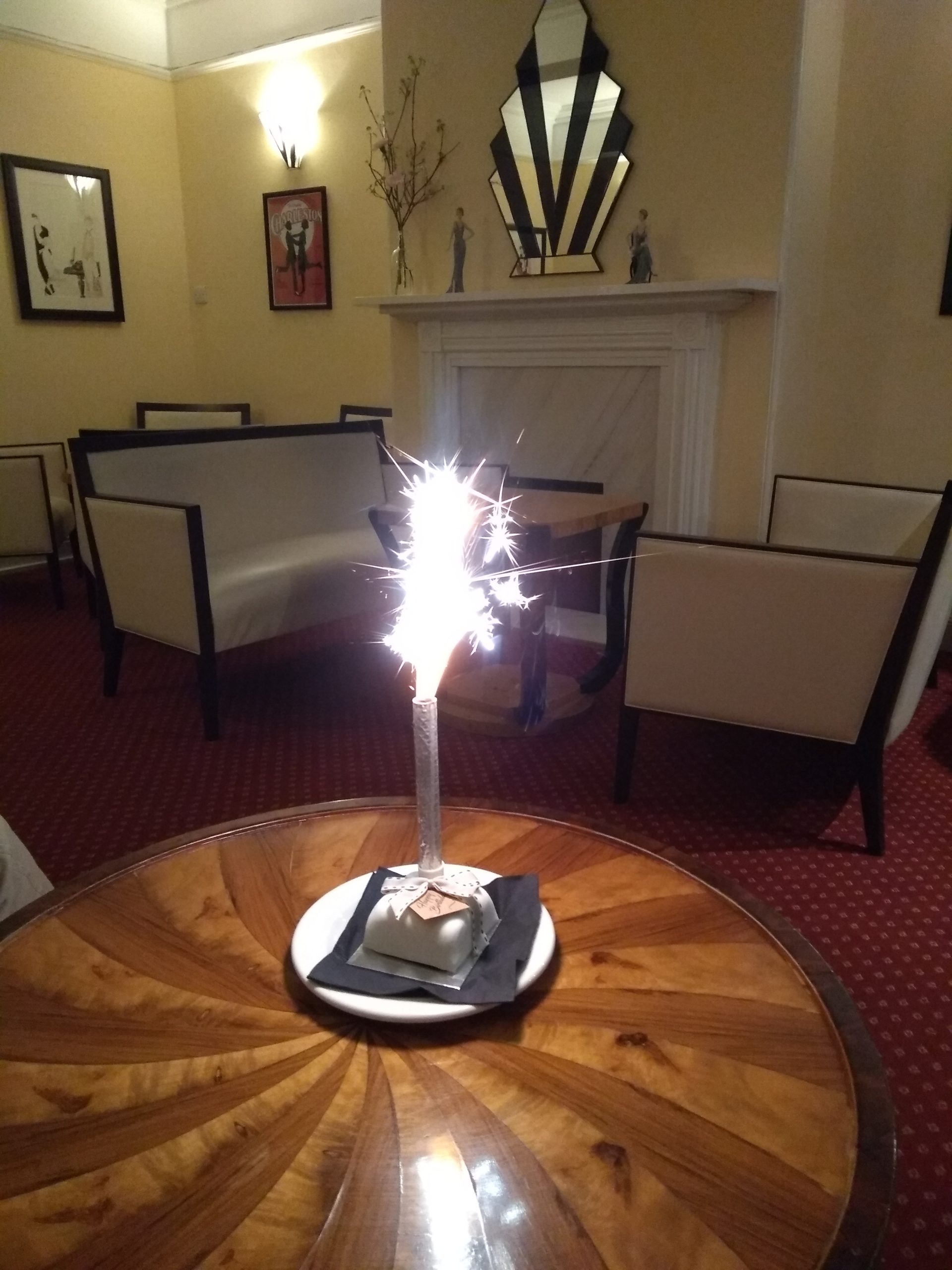 We managed a swift pint (in my case) at the Bucks Arms, where I was able to confirm that it was indeed the location that I tried took for an overnight stay on the occasion of the James Taylor gig. Apparently, for any large scale event in the Hall grounds they are booked up within hours of the concert being announced – so I was a tad optimistic I suspect! Anyway, back at the hotel, we enjoyed the last of our lovely evening meals. A very enjoyable stay, where we did enough without feeling the need to run about like a blue ar**d fly in a feeble attempt to fit everything in. A final brief morning stroll to get a couple of the aforementioned shots of St. Nicholas Church (and the hotel exterior) and it was time for the journey home and don’t spare the metaphorical horses. And who said anything about birthdays. Well, we didn’t but this still came our way the last night in the bar whist having a nightcap!!