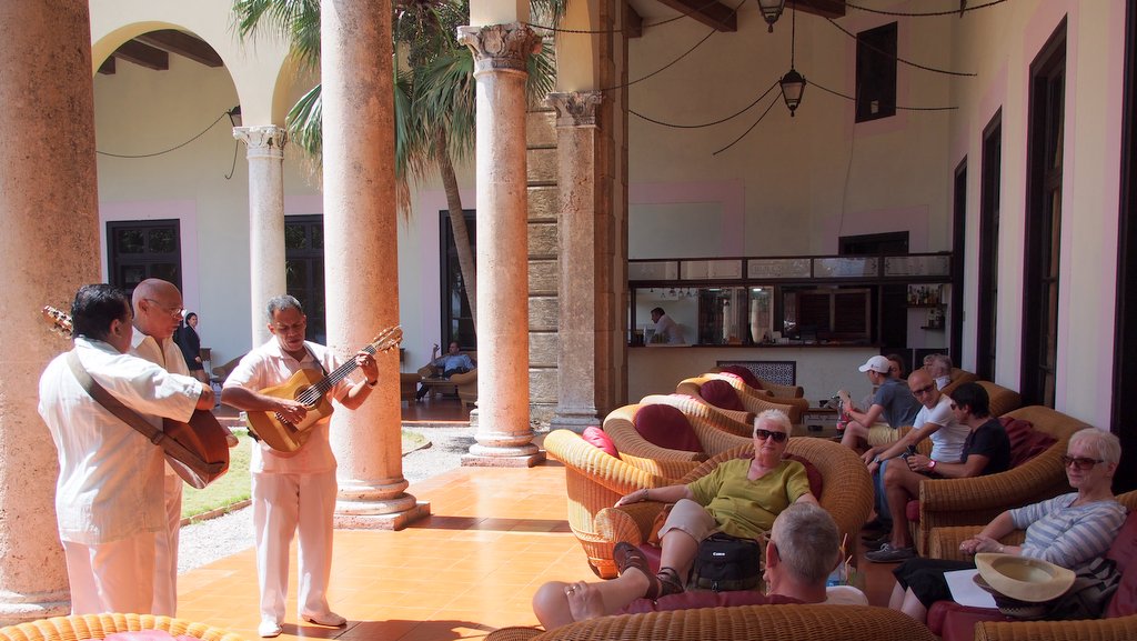 Jetta, Ian and Denise being serenaded on hotel terrace
