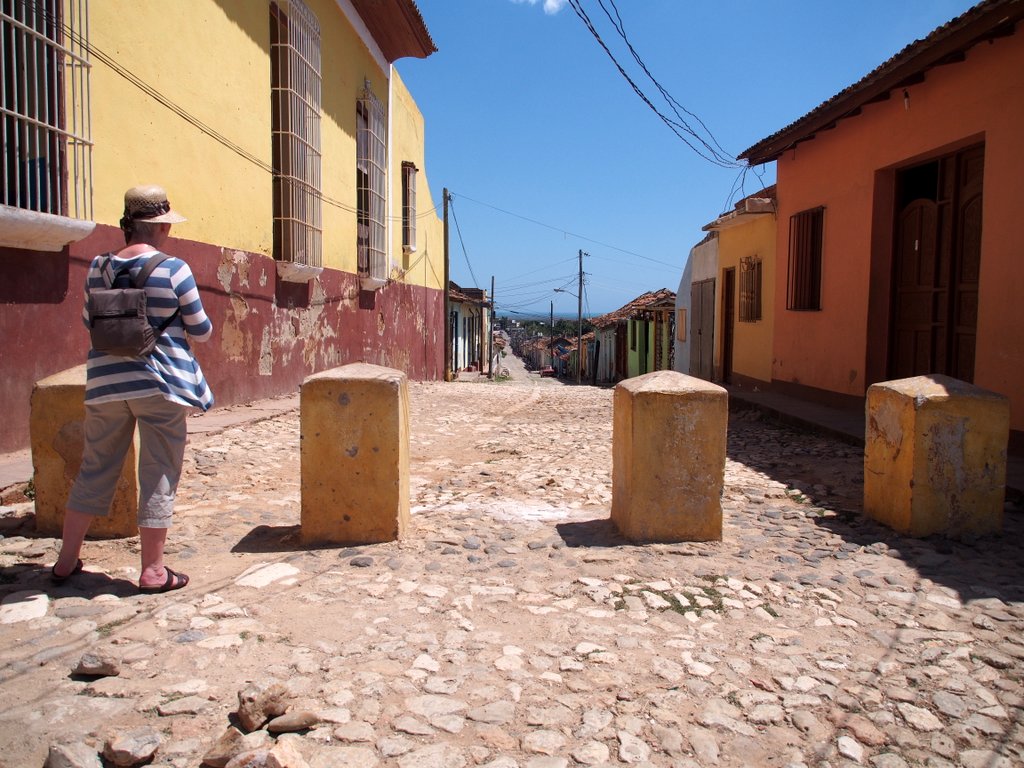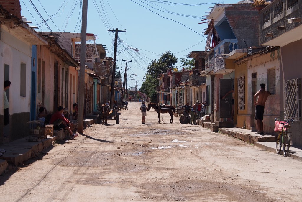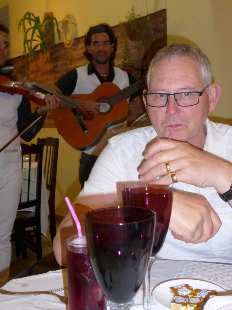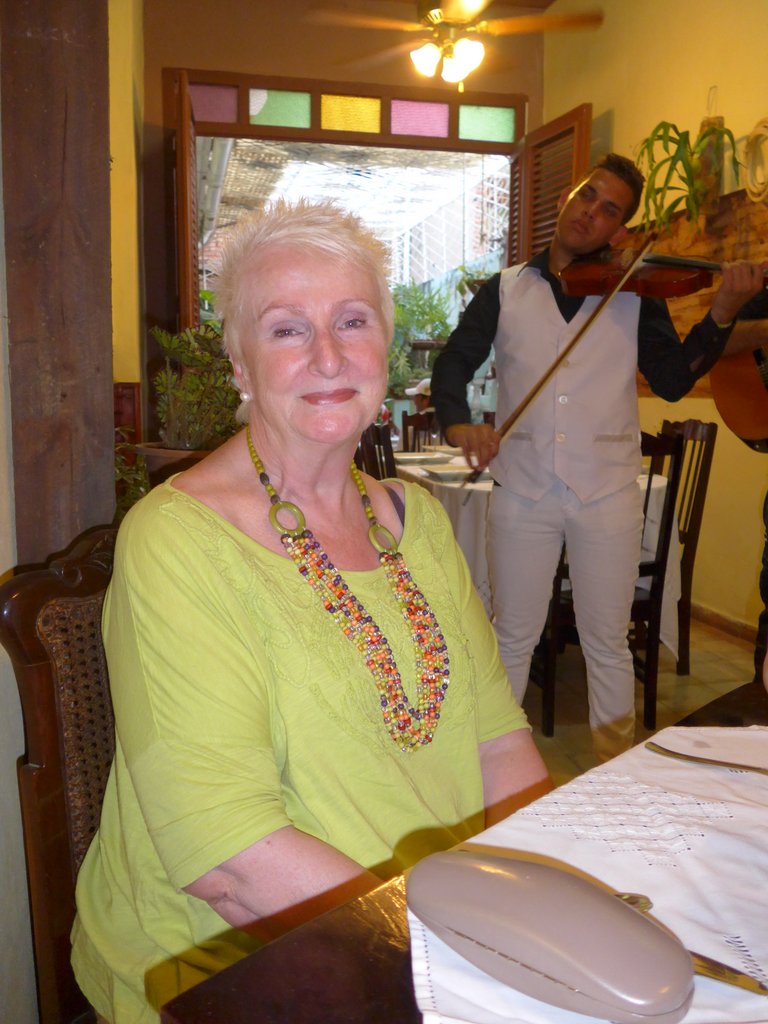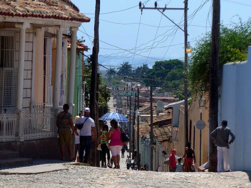 Private Gallery: Cuba Private Gallery | 2014-2016 | Cuba (April 2014) « back to albumTrinidad Two The old town from the Church Bell TowerThe old town from the Church Bell TowerThe town and mountains beyondThe town and mountains beyondTransporting goods in the traditional wayTransporting goods in the traditional way1936 Teatro La Caridad (not in use)1936 Teatro La Caridad (not in use)Bananas by cart, eggs on footBananas by cart, eggs on footDirecting the roof repairsDirecting the roof repairsRoof repairsRoof repairsBuying from the 'hole in the wall'Buying from the 'hole in the wall'A town house yet to be restoredA town house yet to be restoredBack with the shopping (and the paper)Back with the shopping (and the paper)Nearly a one horse town!Nearly a one horse town!Another of the characteristic town shop frontsAnother of the characteristic town shop frontsCuban telecommunications wiringCuban telecommunications wiringHave we got the materials for the job?Have we got the materials for the job?Stopping off for some fruitStopping off for some fruitPicking up the day's meat orderPicking up the day's meat orderAnother shopping breakAnother shopping breakPlumbing bits and bobs for salePlumbing bits and bobs for saleShopping downtownShopping downtownWorrying mixture of raw meat and fruitWorrying mixture of raw meat and fruitSide street view of the church and monastery of St. FrancisSide street view of the church and monastery of St. FrancisJetta and Ian in the Plaza MayorJetta and Ian in the Plaza MayorDonkey for hireDonkey for hireLa Ronda Hotel's inner courtyardLa Ronda Hotel's inner courtyardThe courtyard from the hotel's second floorThe courtyard from the hotel's second floorDenise and Peter by the hotel room attendantDenise and Peter by the hotel room attendantJetta and Ian by the room attendantJetta and Ian by the room attendantTowel art at La RondaTowel art at La RondaColonial housingColonial housingA Trinidadian bar and restaurantA Trinidadian bar and restaurantOne of the town's steeper streetsOne of the town's steeper streetsLa Casa de los Consipiradores (former meeting place of the Cuban nationalist secret society)La Casa de los Consipiradores (former meeting place of the Cuban nationalist secret society)A break from building the revolution?A break from building the revolution?Almost deserted back streetAlmost deserted back streetDenise photographing a pedestrian only streetDenise photographing a pedestrian only streetHouse under repairHouse under repairAnother town street marketAnother town street marketLive music at the restaurantLive music at the restaurantJetta and her favourite violinistJetta and her favourite violinistIan at the restaurantIan at the restaurant