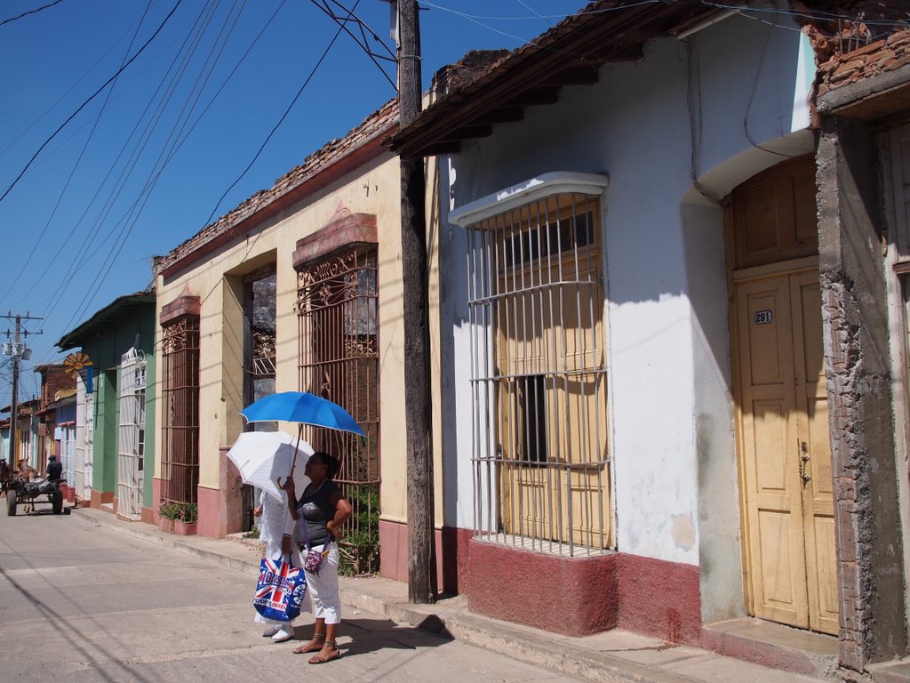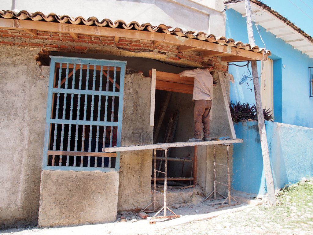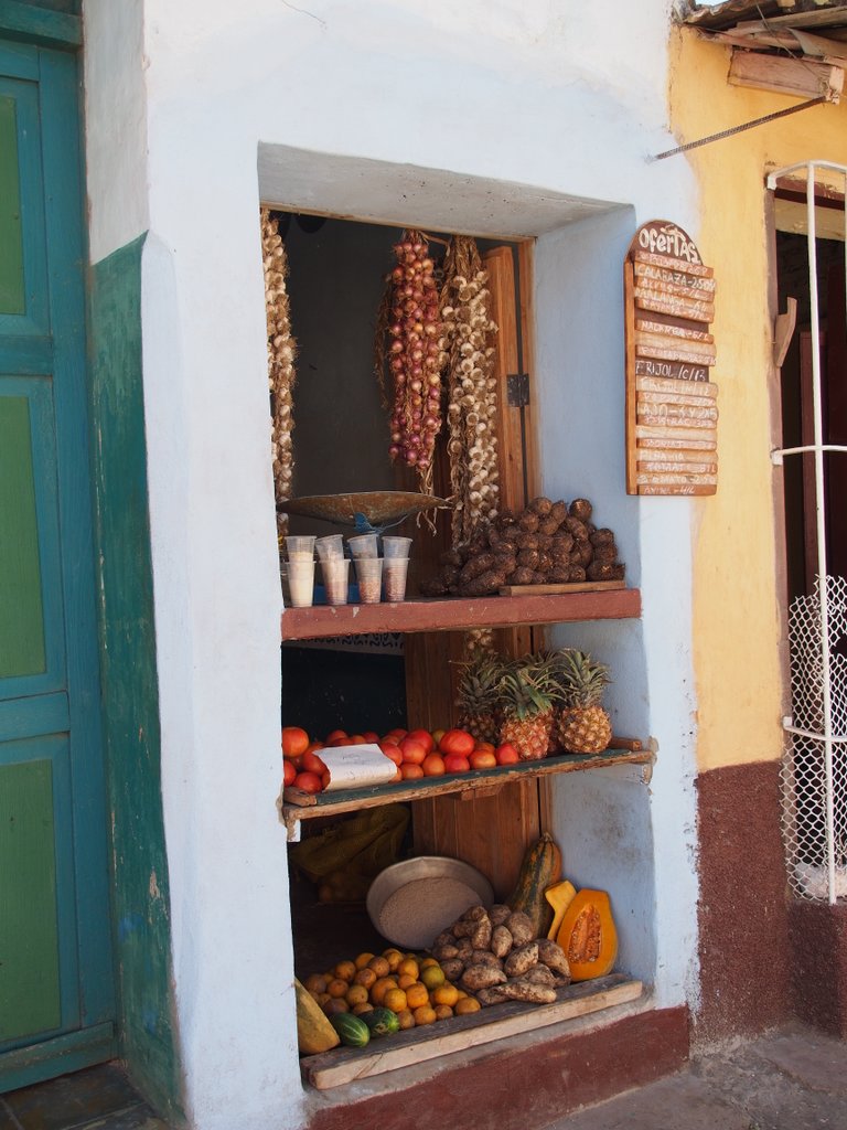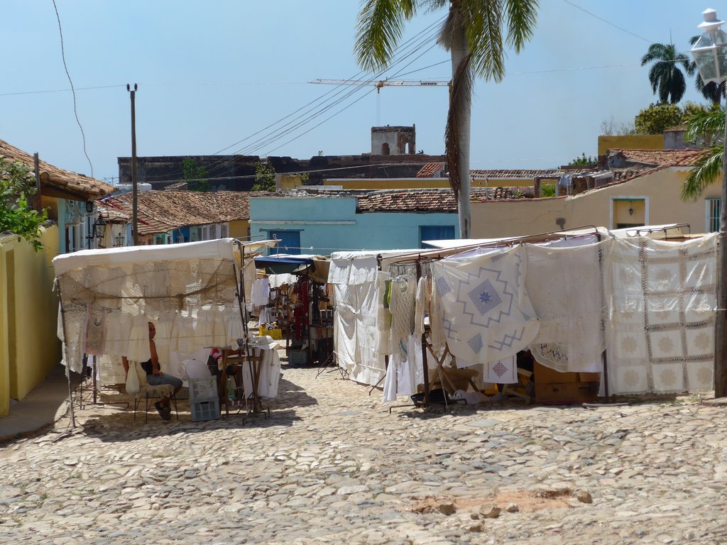 Private Gallery: Cuba Private Gallery | 2014-2016 | Cuba (April 2014) « back to albumTrinidad Two The old town from the Church Bell TowerThe old town from the Church Bell TowerThe town and mountains beyondThe town and mountains beyondTransporting goods in the traditional wayTransporting goods in the traditional way1936 Teatro La Caridad (not in use)1936 Teatro La Caridad (not in use)Bananas by cart, eggs on footBananas by cart, eggs on footDirecting the roof repairsDirecting the roof repairsRoof repairsRoof repairsBuying from the 'hole in the wall'Buying from the 'hole in the wall'A town house yet to be restoredA town house yet to be restoredBack with the shopping (and the paper)Back with the shopping (and the paper)Nearly a one horse town!Nearly a one horse town!Another of the characteristic town shop frontsAnother of the characteristic town shop frontsCuban telecommunications wiringCuban telecommunications wiringHave we got the materials for the job?Have we got the materials for the job?Stopping off for some fruitStopping off for some fruitPicking up the day's meat orderPicking up the day's meat orderAnother shopping breakAnother shopping breakPlumbing bits and bobs for salePlumbing bits and bobs for saleShopping downtownShopping downtownWorrying mixture of raw meat and fruitWorrying mixture of raw meat and fruitSide street view of the church and monastery of St. FrancisSide street view of the church and monastery of St. FrancisJetta and Ian in the Plaza MayorJetta and Ian in the Plaza MayorDonkey for hireDonkey for hireLa Ronda Hotel's inner courtyardLa Ronda Hotel's inner courtyardThe courtyard from the hotel's second floorThe courtyard from the hotel's second floorDenise and Peter by the hotel room attendantDenise and Peter by the hotel room attendantJetta and Ian by the room attendantJetta and Ian by the room attendantTowel art at La RondaTowel art at La RondaColonial housingColonial housingA Trinidadian bar and restaurantA Trinidadian bar and restaurantOne of the town's steeper streetsOne of the town's steeper streetsLa Casa de los Consipiradores (former meeting place of the Cuban nationalist secret society)La Casa de los Consipiradores (former meeting place of the Cuban nationalist secret society)A break from building the revolution?A break from building the revolution?Almost deserted back streetAlmost deserted back streetDenise photographing a pedestrian only streetDenise photographing a pedestrian only streetHouse under repairHouse under repairAnother town street marketAnother town street marketLive music at the restaurantLive music at the restaurantJetta and her favourite violinistJetta and her favourite violinistIan at the restaurantIan at the restaurant