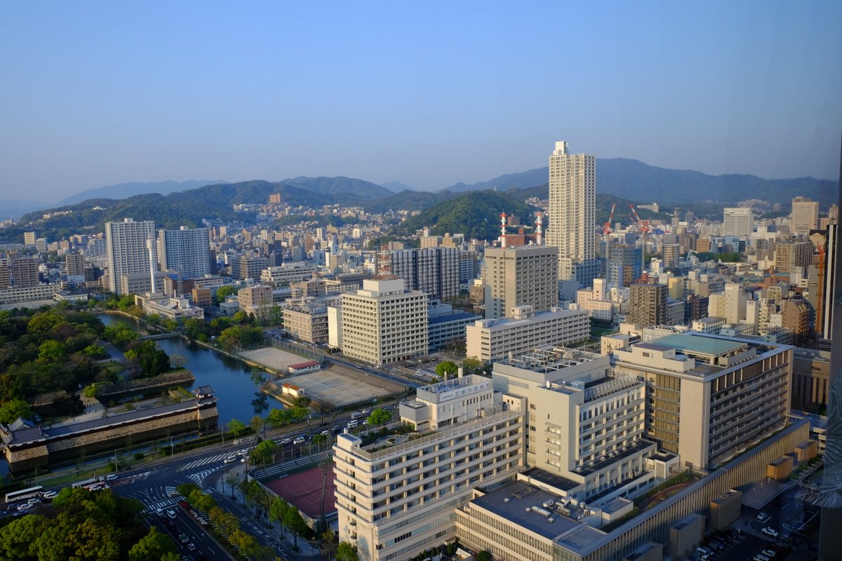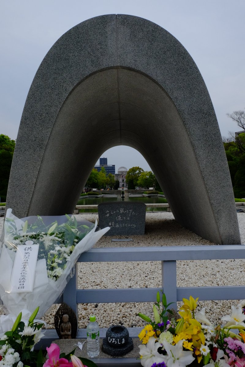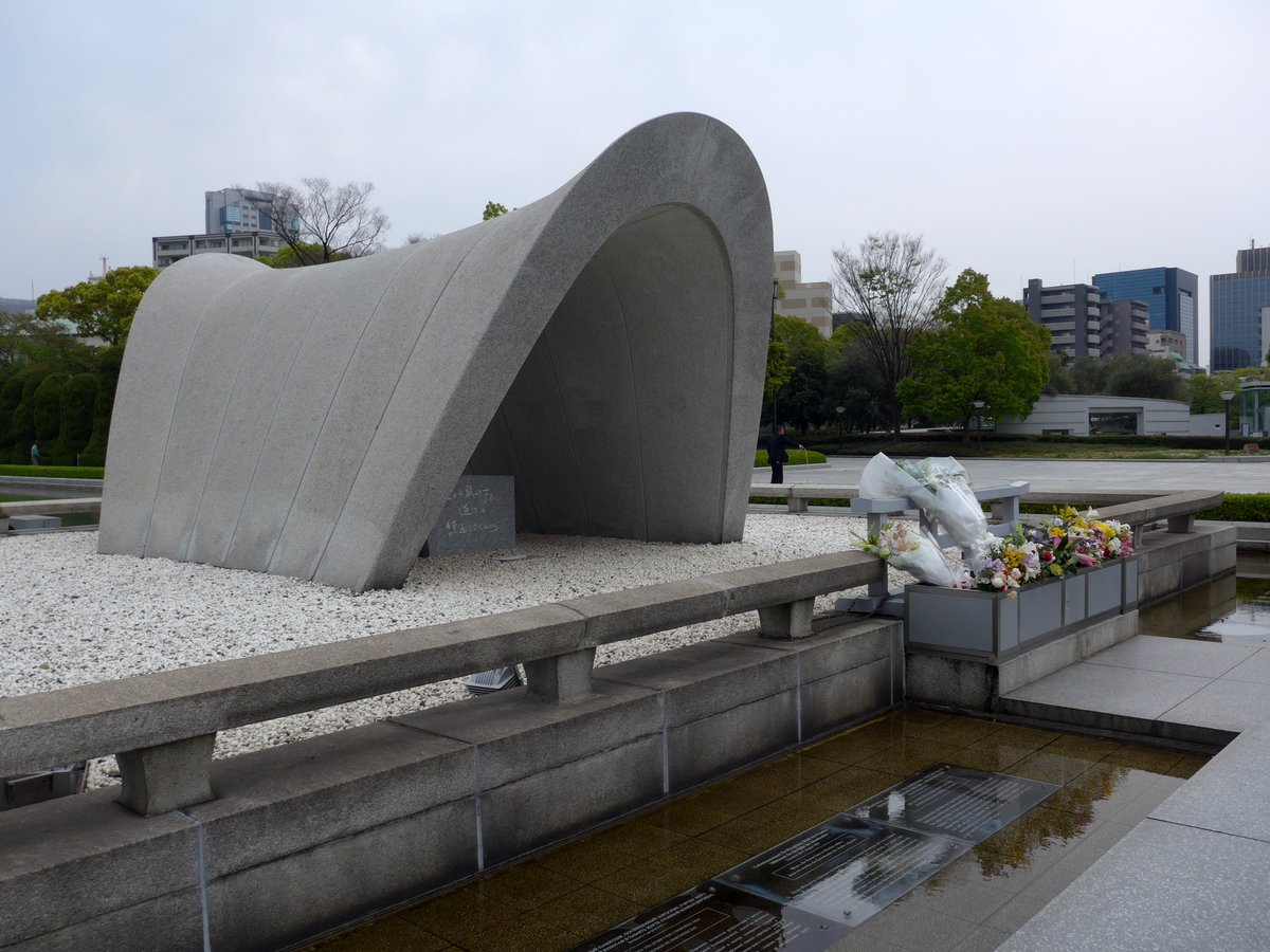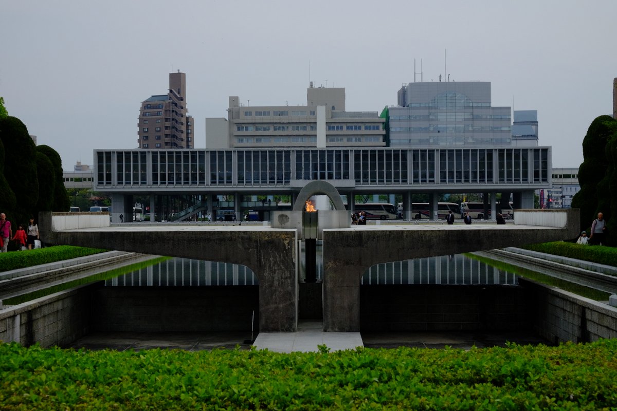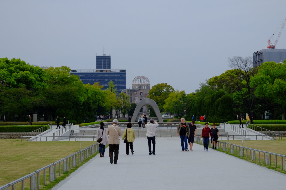 The Promotion Hall and rebuilt Hiroshima as backdrop