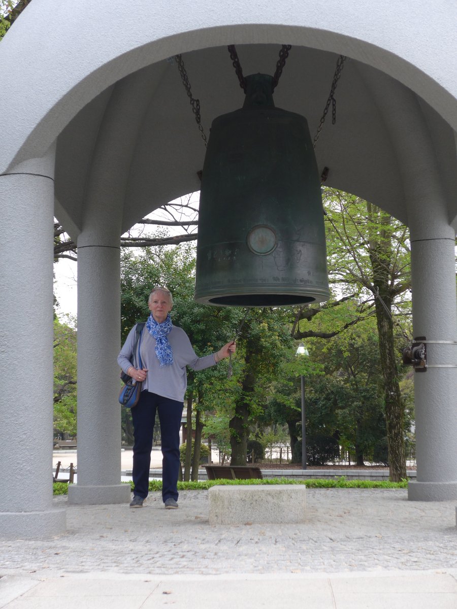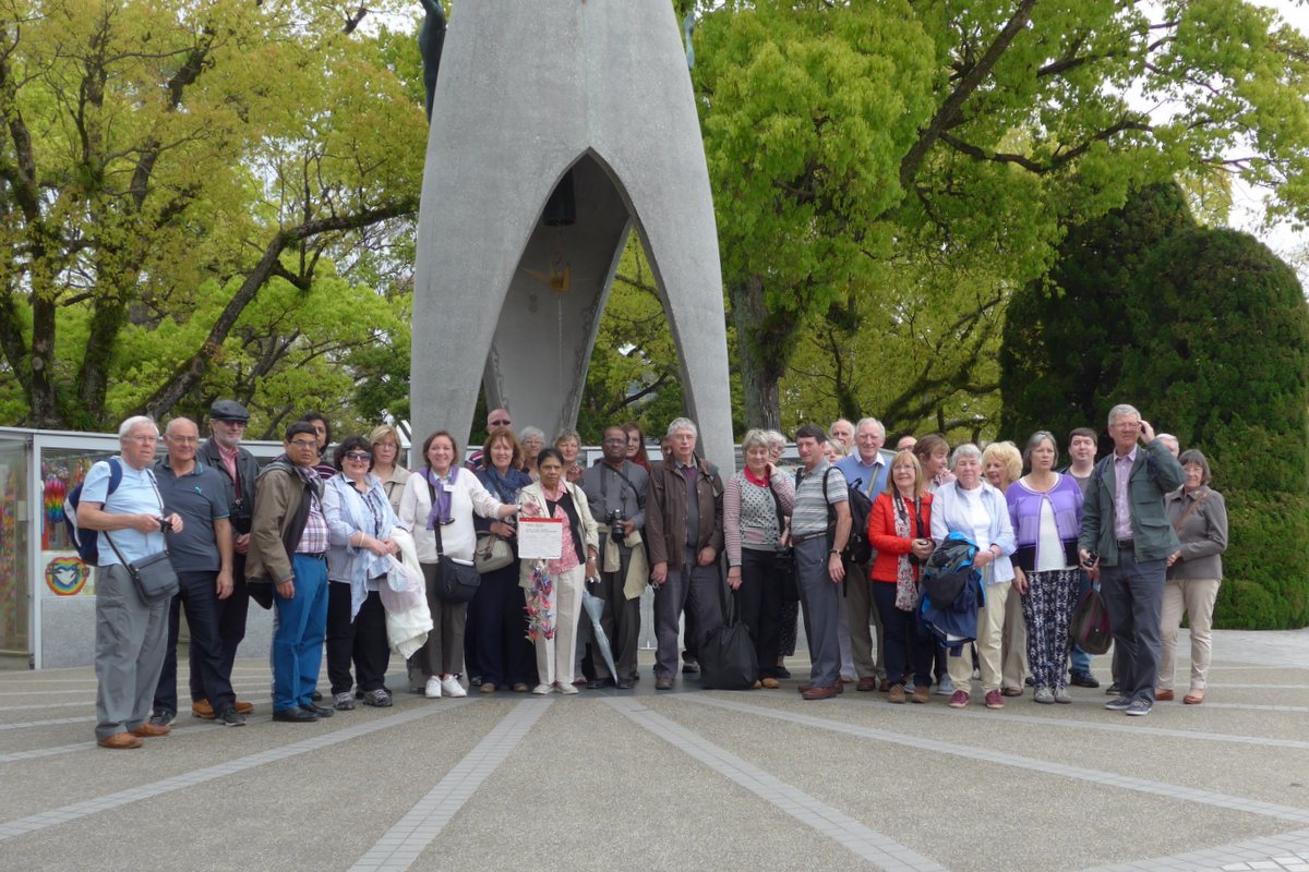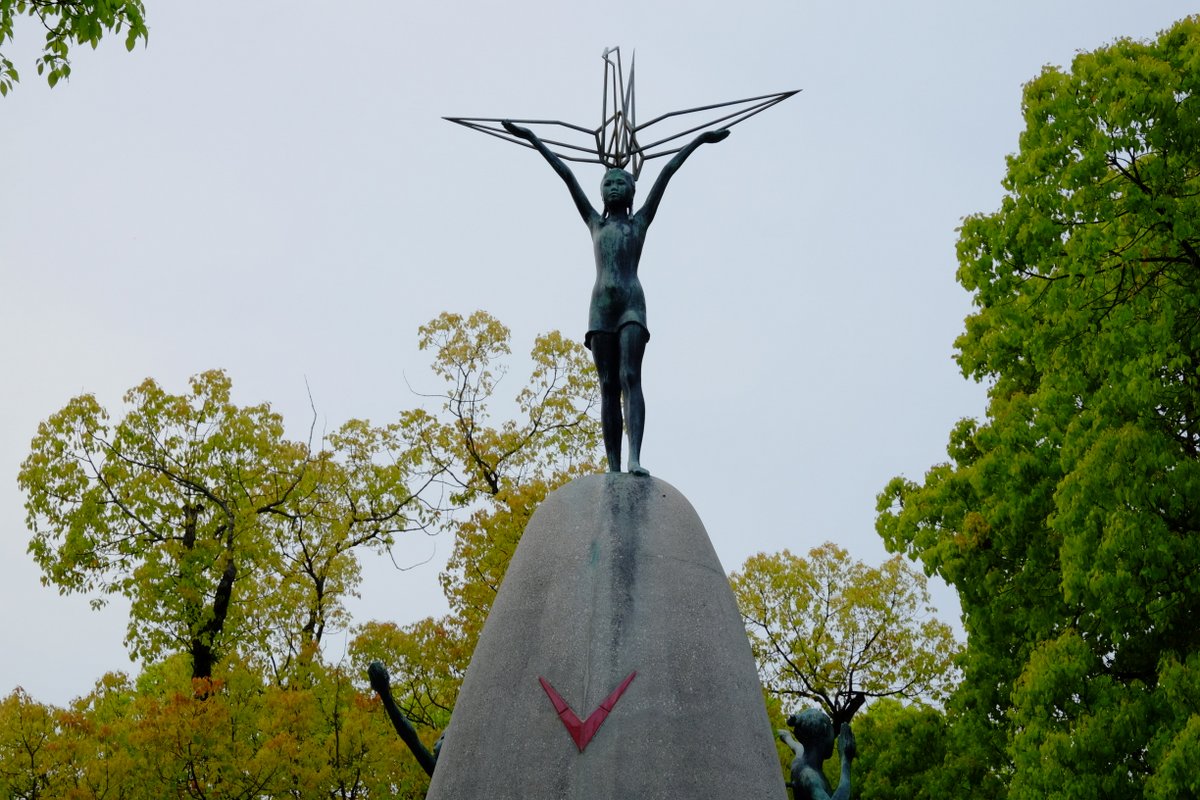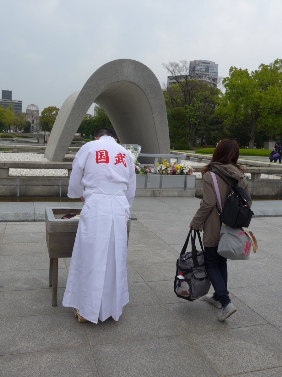 The Promotion Hall and rebuilt Hiroshima as backdrop