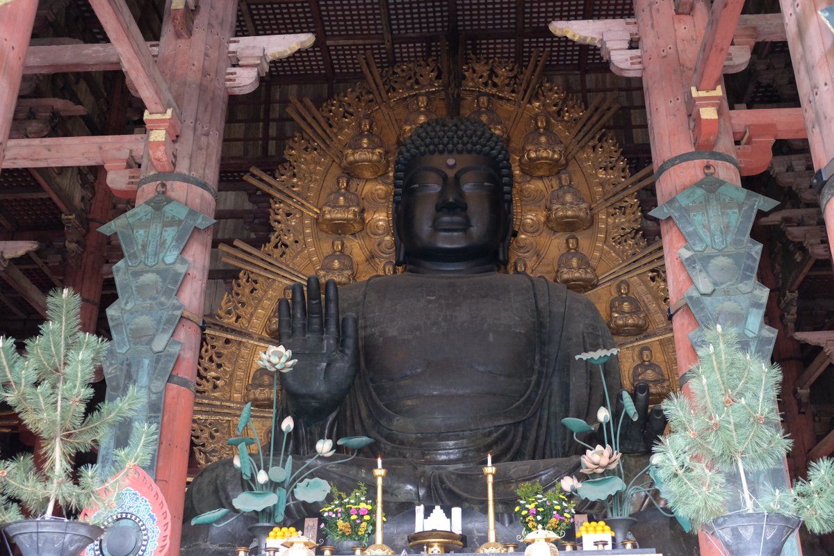 Entering the Buddhist Todaiji Temple in Nara (dates back to 728)