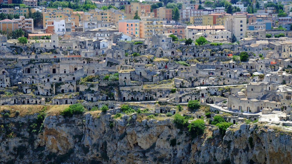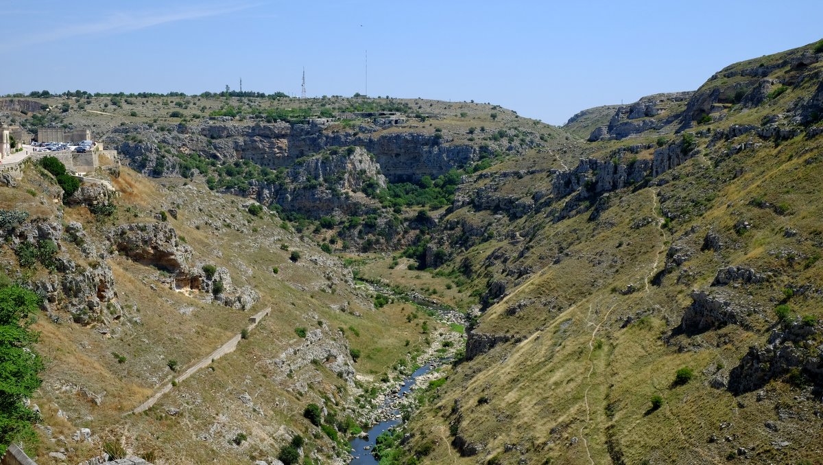 Matera and the Church of Santa Lucia alle Malve from over the gorge