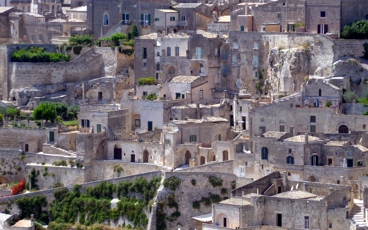 Next up was the ancient town of Matera, one of the first inhabited places in the whole of Italy and the site of some extraordinary ‘cave houses’. These are in the Sassi (ancient town) and are basically habitations dug into the rock itself, which is characteristic of Basilicata and Apulia. Many of them are really little more than caverns, and in some parts of the Sassi a street lies on top of another group of dwellings. One or two of the undeveloped houses have been preserved (along with an 11thC church) and so visitors can get an idea of living conditions for the residents, many of whom were still living here until the 1950s.