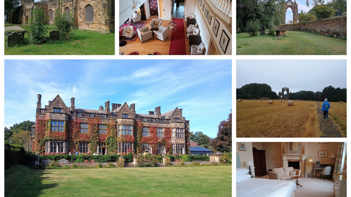 After a last night Trivial Pursuit with the returning cat owners (a narrow loss but it was an away fixture), we set off on the relatively short trip down to Gisborough Hall for a three night stay. Described as on the edge of the North York Moors National Park, not far from the coast, the Hall is a country house hideaway and luxury home-from-home retreat. The Old Hall feature room was very fine indeed, on the first floor with two large feature windows overlooking the grounds at the front of the hotel. Breakfasts were lovely and we had two bistro meals (De Brus Bar & Grill) and one evening meal in the main eatery (Chaloner’s Restaurant)- all top notch. So much so that Mrs. No Name opined that she “would not, not go back again“; high praise indeed.