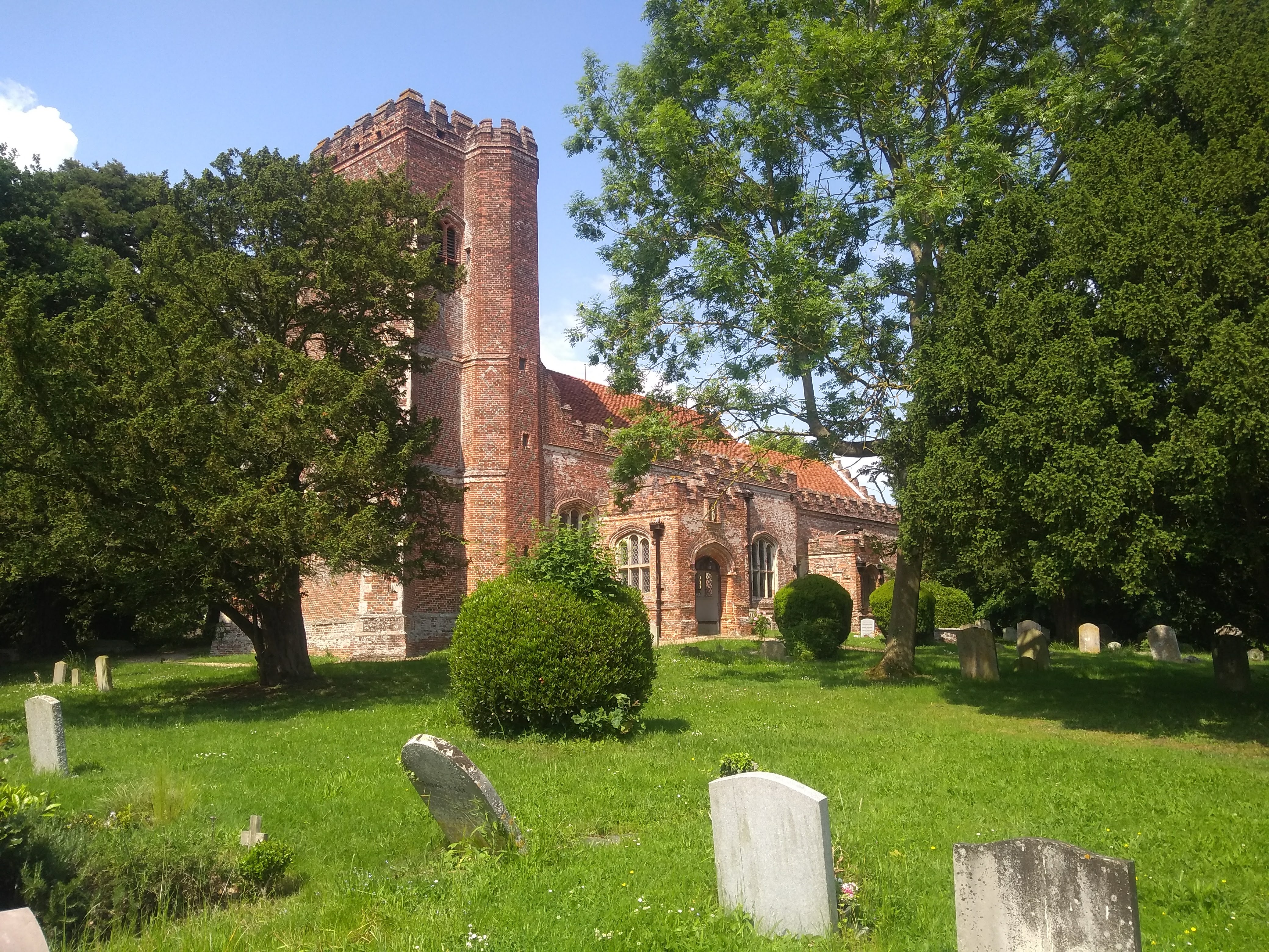 The church as we see it today was built at the same time as the house, around 1523, and uses the same red-brick – possibly made locally. Though the majority of the church is early 16th century, it incorporates fragments of an earlier 14th century collegiate church. The main historic interest is the wall painting of St. Christopher and the Marney family tombs, ranging in date from 1360-1525.